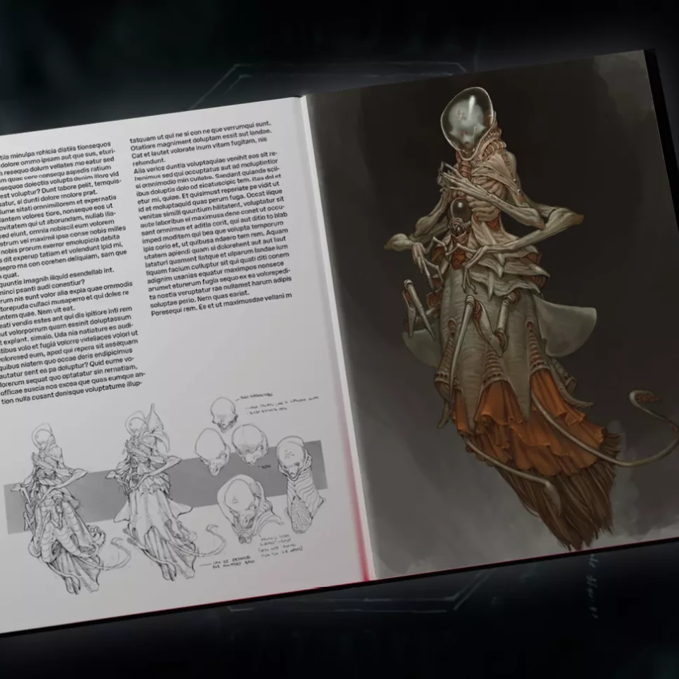 A premium, hard-cover album containing the artwork and sketches from across all Enormity content, as well as additional worldbuilding lore and its deepest secrets.