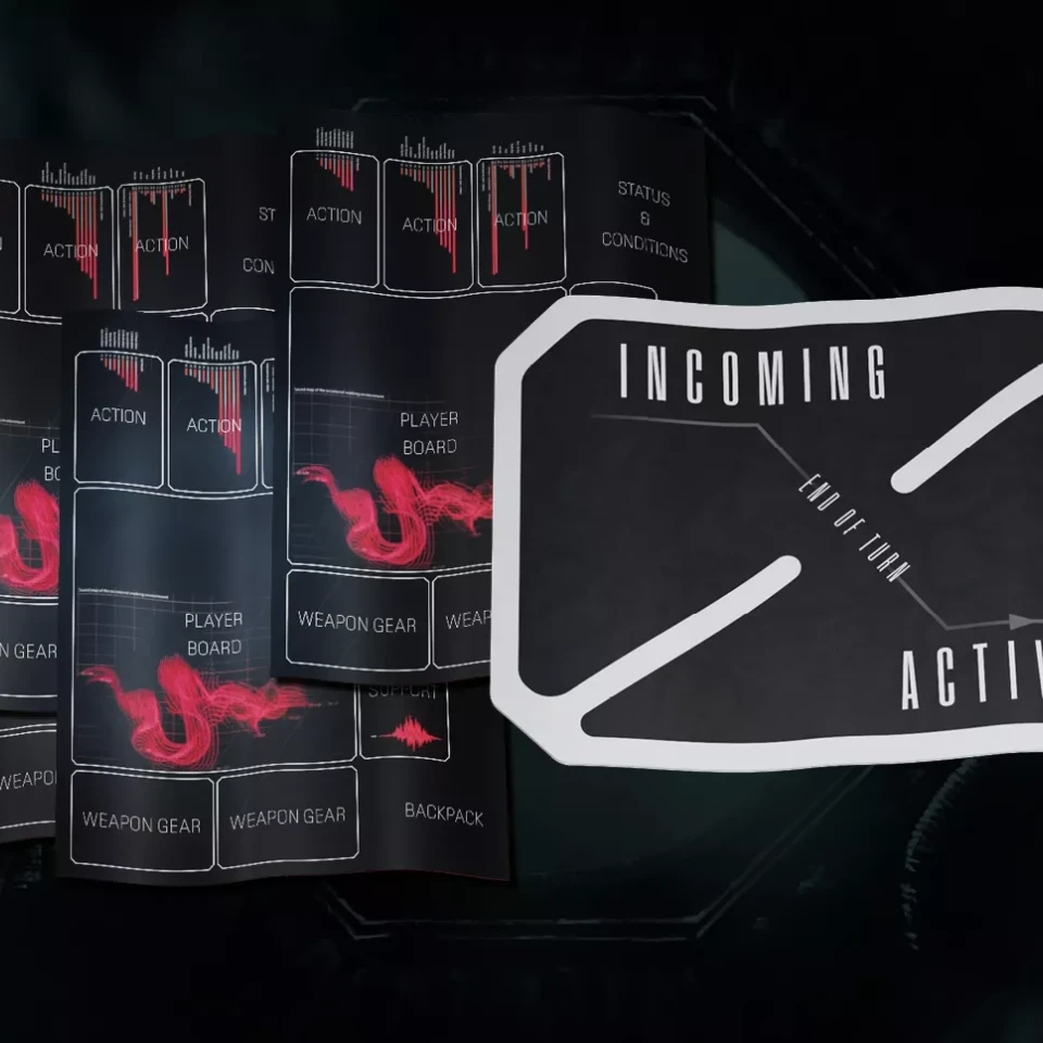 Four playmats for each Spacer player, plus one Spacer Pool mat that acts as an organizer for Spacer tokens.