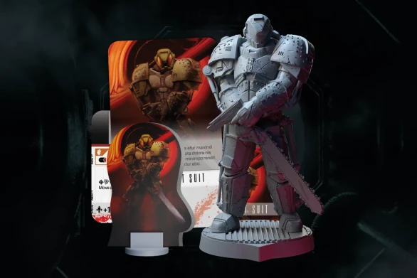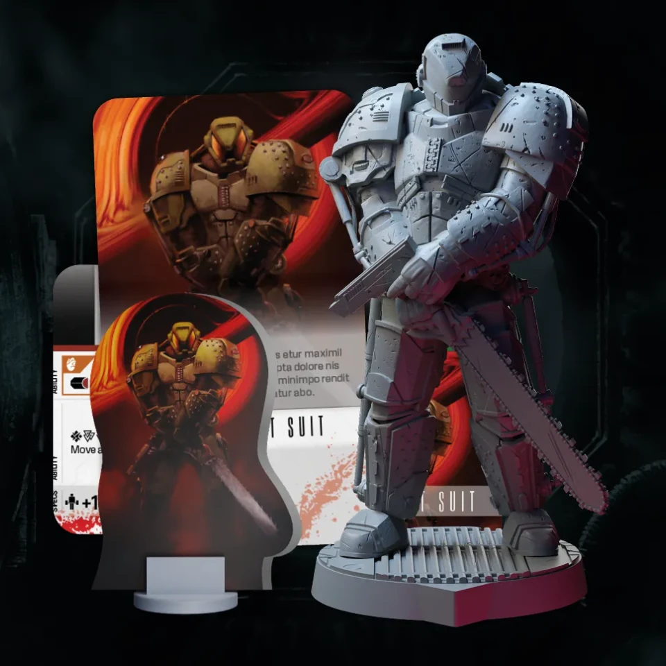 The Last Contact Suit introduces a new potent military suit for use in your narrative and custom campaigns. Includes a miniature, a standee, and an Oversized Suit card.